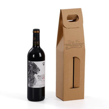Custom Recyclable Gable Top Carton Brown Kraft Corrugated Cardboard Wine Box Bag Paper Red Wine Carrier Gift Box with Window